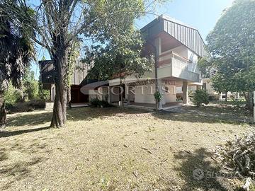 A pochi passi dal centro, in posizione tranquilla e riservata, proponiamo in vendita villa singola di complessivi 660 mq, immersa in un contesto residenziale e circondata da un curato portico che abbraccia la proprietà. Al piano terra, l'ingresso conduce a un accogliente tinello e a una spaziosa cucina abitabile. Un ampio e luminoso soggiorno con camino, una camera matrimoniale, due bagni e un comodo ripostiglio completano il piano. Il primo piano accoglie un grande disimpegno che conduce a quattro camere da letto, tre bagni e ampi terrazzi, con vista sul verde circostante. Il piano seminterrato è dedicato al tempo libero e alla convivialità, con una spaziosa taverna con camino, sala biliardo, camera da letto, bagno e garage. Completa la proprietà giardino circostante. Una soluzione esclusiva, ideale per chi cerca spazi generosi, comfort e vicinanza a tutti i principali servizi, senza rinunciare alla privacy.