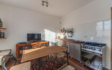 Vicini all'ingresso della casa si accede ad un altro appartamento di due locali, composto da soggiorno cucina a vista, bagno e camera matrimoniale.