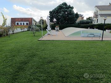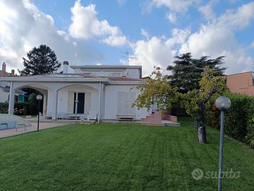 Esternamente alla Villa troviamo uno splendido giardino di 1500 Mq con circuito di irrigazione autonomo, piscina 5x15, pozzo e copertura per ricovero auto ed uno splendido porticato ed anche un patio verandato per mangiare all'aperto.