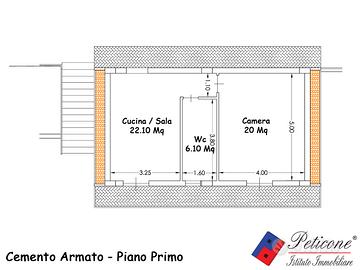 PIANO PRIMO: Possibilità di realizzare abitazione di 45 Mq con SOGGIORNO e ANGOLO COTTURA, due CAMERE e due BAGNI;
