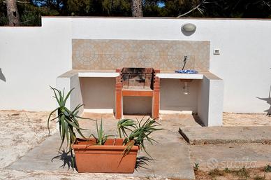 Due camere matrimoniali, una camera con due letti a soppalco e uno singolo, grande sala soggiorno e grande cucina sala-pranzo con divano, due bagni (uno grande con doccia interno alla casa e un piccolo bagno-doccia parte esterna), veranda, cucina in cui è ubicata la lavatrice, grande ripostiglio. Spazi esterni con una veranda vista mare adibita con sedie e tavolo, propria cisterna di 30 mc di acqua, spazio esterno dietro la casa dove è possibile parcheggiare anche un'altra auto, giardino lato mare con barbecue.