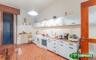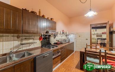 Salendo al primo piano, si accede al secondo appartamento, con una disposizione analoga: soggiorno grande e arioso con balcone, cucina abitabile con ulteriore affaccio esterno, due camere matrimoniali con balcone e bagno finestrato con vasca.