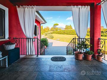 La villa è composta da un meraviglioso terrazzo con portico che fa da cornice all'ingresso, ed entrando abbiamo un'ampia ed elegante sala doppia, un'ampia cucina abitabile, due camere da letto, un elegante e spazioso bagno, un comodo locale lavanderia e disimpegno. Accedendo da un secondo ingresso indipendente, incorniciato da una corte, troviamo una seconda unità immobiliare composta da soggiorno con angolo cottura, un'ampia e comoda camera, ripostiglio e bagno. Questa seconda unità immobiliare permette diverse possibilità di utilizzo, grazie al suo ingresso indipendente. Completa la proprietà uno spazioso garage ed una comoda area parcheggio. L'immobile si presenta in ottimo stato interno ed esterno e curato nei minimi dettagli, oltreché molto luminoso ad ogni ora del giorno grazie ai suoi immensi spazi circostanti. La meravigliosa cornice del parco è composta da prati perfettamente curati, alberi da frutta, uno splendido salice piangente e ben 105 alberi di ulivo ultraventennali. L'immobile gode inoltre di una posizione comoda, strategica e ben servita, avendo esattamente fuori dal proprio cancello una fermata Cotral per ogni tipo di spostamento con i mezzi pubblici, ed essendo al contempo poco distante dal Centro Storico di Genazzano e dal Centro Storico di Valmontone.