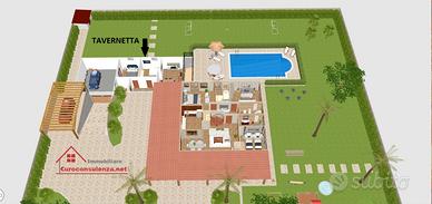 La villa è circondata da un robusto ed elegante porticato che abbraccia l'intera struttura e che permette di mangiare fuori e di stare in completo relax,un doppio ingresso permette di entrare all'interno della villa dove ci "attende" una bellissima sala pranzo/soggiorno ,una spaziosa cucina ,3 fantastiche camere da letto e 2 grandi e comodi bagni ,uno dei quali con vasca idromassaggio.Una scala interna a chiocciola permette di raggiungere una bellissima mansarda in legno che potrà essere arredata per ricavare una zona studio .Distaccata dal blocco principale troviamo una tavernetta composta da cucina, 2 camere da letto e un bagno ,utilissima per fare soggiornare i vostri amici e parenti. La villa dispone anche di un comodissimo parcheggio nel seminterrato con basculante automatico che permette comodamente di parcheggiare le auto e i mezzi in genere di tutta la famiglia. Le particolarità della villa che la rendono ESCLUSIVA sono tante, la prima in particolare è la meravigliosa piscina situata nella parte retrostante della struttura che permette di avere un'oasi di pace privata, in cui potervi rilassarvi e stare felici in famiglia o insieme ai vostri amici, la seconda particolarità è il tetto completamente costruito in legno che rende elegante e accogliente l'interno della villa,inoltre permette anche di trattenere il calore durante l'inverno.