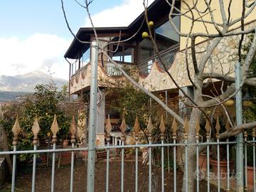 La villa si dispone di un piano terra composto da un piccolo terreno con alberi di limone mandarino e fichi il altro spazio pavimento con angolo barbecue, zona interna grande salone con camino, cucina bagno.,scala chiocciola che porta al 1 piano dove si trova una grande veranda, 3 camera da letto e bagno, infine una mansarda su un unico ambiente intorno ai 45 mq.