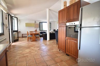 All'interno, l'atmosfera è calda e accogliente. La zona giorno si presenta come un grande ambiente open space che unisce soggiorno e cucina, impreziosito da un caratteristico camino a legna che rende le serate invernali particolarmente piacevoli. Un disimpegno conduce alla zona notte, composta da due camere da letto luminose e un bagno ben rifinito, completo sia di vasca che di doccia. Il riscaldamento è inoltre garantito dai termosifoni presenti in ogni ambiente, mentre il raffrescamento avviene mediante pompa di calore.