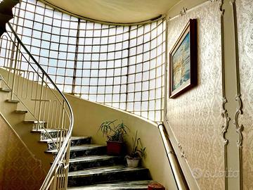 Una scenografica scala elicoidale, rilevante elemento architettonico, collega i vari piani dalla cantina alla soffitta. Al primo piano troviamo tre camere doppie, un bagno, una veranda e tre terrazzi.