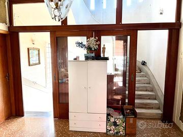 Un bel ingresso unisce diversi ambienti: sala da pranzo che immette nella cucina abitabile, soggiorno, studio con caminetto, bagno, ripostiglio e lavanderia.