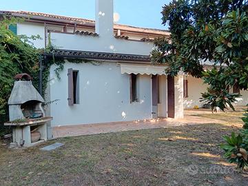 Questa dimora accoglie in un grazioso portico che immette nell'ampia zona giorno con cucinino e saletta da pranzo separati, vi è poi un bagno e altri locali ad uso deposito/cantina. Al primo piano troviamo quattro camere di cui una con uscita sul terrazzo, un bagno e un altro locale. Le dimensioni offrono vasti spazi per la vita familiare e un giardino esterno tutto da godere nel tempo libero.