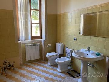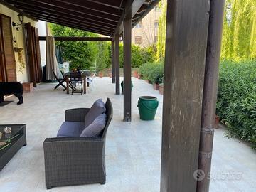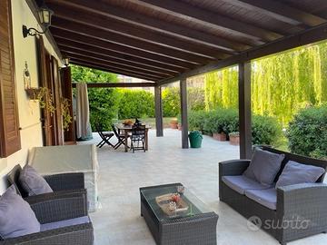 VILLA IN CITTA' SU DUE LIVELLI SU UN LOTTO DI TERRENO DI MQ 2200 CIRCA ELEGANTE E MOLTO LUMINOSA CON FINITURE INTERNE IN PIETRA A VISTA. ZONA GIORNO AMPIO SALONE DOPPIO, STUDIO, CUCINA ABITABILE, BAGNO, DOPPIO SERVIZIO. AL PIANO SUPERIORE ZONA LIVING, TRE CAMERE, BAGNO. VERANDA ESTERNA MQ 30, INFISSI IN LEGNO CON VETRO CAMERA RISCALDAMENTO AUTONOMO