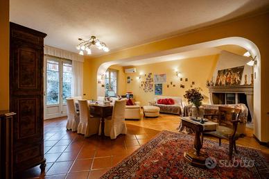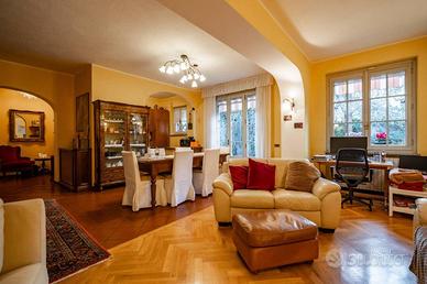 Rif:3268 (125161879) - Inserito in un contesto che vede le sue origini alla fine del '800 e a pochi passi dal Lago di Garlate e dal lungolago di Vercurago proponiamo in vendita esclusiva villa immersa in un parco privato frutto di una sapiente conversione edilizia. L'ingresso nella proprietà è delimitato da un cancello in ferro battuto che cela un vialetto completamente finito in granito che attraversa il parco e si caratterizza per la presenza di una rotonda all'interno del quale vi è una scenografica fontana con vasca. Superato questo spazio del parco si procede verso l'abitazione dove si viene accolti da un imponente portico, il quale nasconde al suo interno non solo un affresco ma anche l'ingresso della autorimessa coperta al piano. Completando il dialetto si arriva, infine, all'ingresso di casa. Varcato questo ambiente si viene accolti da un ambiente caldo, non banale, che riesce a trasmettere l'atmosfera di questa dimora storica ma che ha anche saputo aggiornarsi. Finiture in pietra, pavimento in cotto e parquet ci accolgono raccontando una storia industriale mai perduta nella memoria. Internamente il layout di casa prevede un ingresso che si pone nel mezzo tra la zona giorno e una prima zona notte. Gli ambienti dedicati al giorno dispongono di un soggiorno doppio che ospita una libreria, una zona conviviale con divani e camino, zona pranzo con adiacente cucina separata. Questi ambienti dispongono, infine, di un'ampia porta finestra che permette una facile connessione con il padio esterno. La zona notte del piano terra mette a disposizione due ampie camere ed un bagno di servizio che ben si presta anche in una duplice funzione di bagno giorno. Oltrepassata questa zona notte vi è un bagno completo nonché un locale stireria ed un ampio locale dedicato oggi ad ingresso verso il box. Una delle particolarità di questa villa è la presenza di un enorme bo - Classe: F - IPE: 276.00 kWh/mq anno