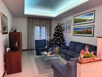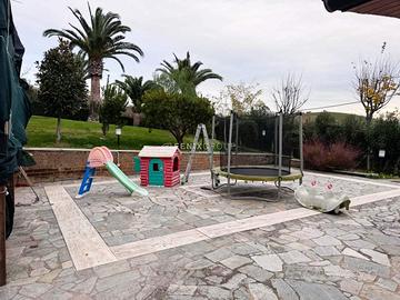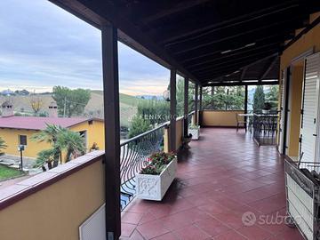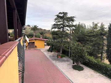 VILLA CON VISTA PANORAMICA IN MONSAMPOLO DEL TRONTOFENIXGROUP di San Benedetto del Tronto propone in Vendita un Elegante VILLA con ampia corte pavimentata e giardino con una splendida vista panoramica in Contrada Collelungo, 11 Monsampolo del Tronto.La soluzione di 380 mq circa, dislocata su 2 livelli, è così composta:Ampia corte pavimentata e giardino di 1100 mq circa e Dependance di 60 mq circa.La soluzione è composta da due unità separate:PIANO TERRA: Troviamo ingresso su luminoso soggiorno, cucina separata abitabile, disimpegno, due camere da letto matrimoniali, e doppio bagno uno finestrato con box doccia e l'altro cieco.Sempre al piano terra, troviamo tre magazzini, ampio garage 128 mq circa e dal garage si accede ad un pratico fondaco e bagno.PIANO PRIMO: Tramite scalinata esterna si accede al piano primo con portone separato: Ingresso su ampio salone,cucina separata abitabile con camino ed accesso esterno all'ampia terrazza coperta. Nella zona notte, troviamo tre camere da letto matrimoniali di cui una con bagno e accesso al portico, bagno finestrato con box doccia e rivestimento in mosaico.La SOLUZIONE in oggetto, realizzata in stile classico, con caratteristiche tipiche delle residenze italiane, con esterno rifinito in intonaco, persiane in PVC, ampio giardino completamente recintato, arricchito con piante ornamentali anche ad alto fusto, dove sono presenti alberi di ulivo, da frutto, zone di prato, zona parcheggio esterna e 2/3 posti auto coperti.L'unità immobiliare in oggetto si presenta in buone condizioni generali, con pavimentazione in marmo/ceramica sull'intera superficie, infissi in PVC vetro doppio, impiantistica funzionante e aggiornato alle normative. Localizzata in posizione residenziale, privilegiata ma non distante dai principali servizi, questa villa è la soluzione idonea per chi cerca una residenza autonoma, con vista panoramica sul mare, sui Monti della Laga, del Gran Sasso che danno un valore aggiunto alla villa e la rendono unica e ricerc