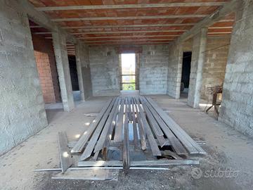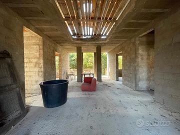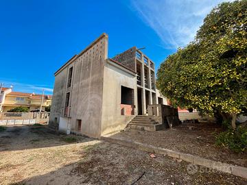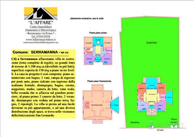 C4) a Serramanna affascinante villa in costruzione (tetto completo di tegole), su grande lotto di terreno di 1.200 mq (divisibile in più lotti), superficie coperta di 150 mq a piano su tre livelli. La casa in progetto è così composta: locali seminterrati con bagno, 2 vani, rampa di ingresso per posti auto, piano rialzato con ingresso dalla scalinata frontale, disimpegno, bagno, cucina, soggiorno, studio, camera da letto, vano scala, bella veranda che si affaccia sul giardino posteriore; al piano primo 2 camere da letto, 2 verande, disimpegno con veduta sul piano terra, bagno, 2 ripostigli. La villa si presta ad una facile divisione in più appartamenti, o ad una diversa distribuzione degli spazi, si trova nelle vicinanze della lottizzazione San Leonardo.