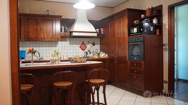 b) livello 2: zona giorno con ingresso dal portico rialzato, cucina e stanza da pranzo, ampio salone con caminetto a legna ventilato e uscita sul grande portico abitabile ( 85 mq + portico 30 mq)