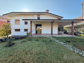 La villa è contornata da un ampio giardino (area verde) per totali c.a. mq 800 recintato da tre lati, con una serie di piccole tettoie aperte per deposito legna e materiali diversi