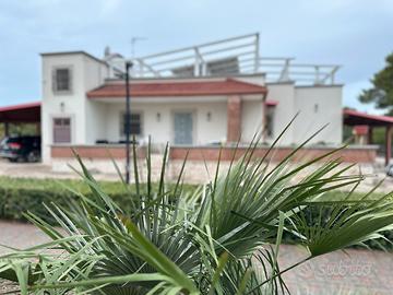 Villa indipendente ed interamente ristrutturata sita in zona strategica a circa 300 mt. dalla superstrada Taranto-Martina Franca a pochi chilometri dal Mar Ionio e da Taranto (Città dei 2 Mari)da un lato e dalla bellissima Valle d'itria dall'altro. L'immobile è realizzato su piano rialzato ed è dotato di un'ampia veranda dove è posto l' ingresso principale dell' abitazione che accoglie l'ospite in un ampio e luminoso soggiorno con annessa sala da pranzo. Attraverso un disimpegno è possibile accedere alla camera da letto matrimoniale con annessa cabina armadio, a due camerette, ai due bagni di nuova realizzazione e alla cucina attrezzata in muratura da cui si accede ad una cantina sottoposta. L'abitazione è stata completamente rivisitata relativamente ad impianti e comfort, per il riscaldamento la villa è dotata di termocamino ed in alternativa é possibile utilizzare una caldaia onnivora. Per la produzione di acqua calda é presente anche un pannello solare termico/pompa di calore .