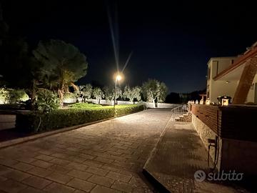 In sede di ristrutturazione l'abitazione è stata dotata di porte interne della Pivato, infissi esterni a taglio termico della Schuco (idonei anche per l'isolamento acustico), è presente inoltre impianto di videosorveglianza, pannelli fotovoltaici 6Kw, clima ed allarme. Le finiture dell'immobile sono di pregio e fanno si che la villa risulti fruibile come dimora residenziale e non solo per i momenti di relax. La villa e' circondata da un terreno pertinenziale di circa 2500 mq di cui 1000 mq sono coltivati a frutteto, i restanti 1500 mq adibiti a oasi verdi e spazi solarium realizzati con betonelle .