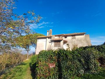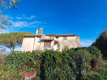 Viterbo -San Martino al Cimino- Strada Case Nuove: Villa storica di 300 mq con parco circostante di 3000 mq con uliveto e alberi da frutto. La Casa di campagna è ben esposta, si localizza su un poggetto, ed è molto panoramica. Al piano terra, antistante all'ingresso, si trova un bel portico terrazza. All'entrata si è accolti da un'atmosfera calda e familiare con grande cucina e camino, salone con camino. Gli ambienti sono rustici e non mancano elementi strutturali in pietra e legno. Le camere sono 4, tre i bagni. Al piano primo a cui è possibile accedere anche con un ingresso autonomo si trova un appartamentino con soggiorno e angolo cottura, camera e bagno. Al piano S1 si sviluppano il magazzino e la cantina. L'unità immobiliare è termo autonoma, con caldaia onnivora, l'acqua è quella di città. Lo stato è da rivedere.