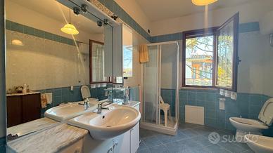 Una scala interna conduce al piano seminterrato, un ambiente estremamente versatile grazie alla presenza di una cucina rustica con camino, due locali utilizzabili come cantina o posto auto e un ulteriore bagno. Questo piano può facilmente diventare uno spazio indipendente e funzionale.