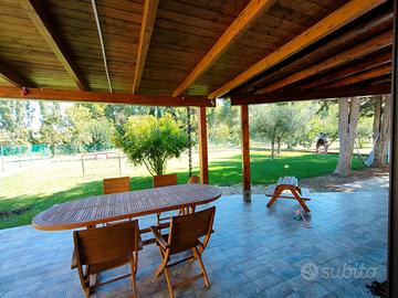 Completano la proprietà: palestra esterna di 20 mq (con condizionatore e doccia), capanno attrezzi, posto auto coperto e box per moto e biciclette, legnaia.
