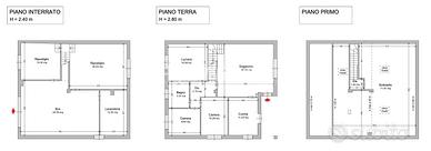 Al piano terra troviamo un accogliente portico che conduce all'ingresso principale, una luminosissima zona giorno composta da sala da pranzo e cucina abitabile, disimpegno della zona notte con camera matrimoniale, due camerette (una delle quali ideale come studio) e un bagno finestrato.