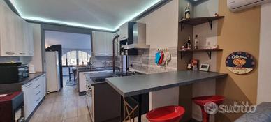 La casa di 85 mq è composta da soggiorno pranzo, cucina, veranda chiusa, due camere da letto e bagno.