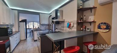 La casa di 85 mq è composta da soggiorno pranzo, cucina, veranda chiusa, due camere da letto e bagno.