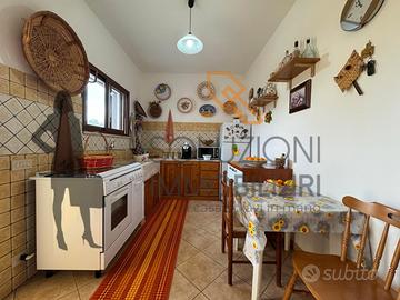 L'abitazione accessibile da un cancello carrabile è composto internamente da cucina, ampio soggiorno, disimpegno, due comode camere da letto, un comodo bagno con doccia e finestra, un locale di sgombero ed una lavanderia.
