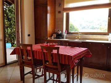 L'ingresso della villa si apre direttamente sull'ampio e luminoso salone, il vero cuore della casa. Questo spazio conviviale si estende fluidamente verso l'esterno attraverso un portico coperto, creando un'oasi perfetta per vivere il giardino privato in ogni stagione. Adiacente al salone, la cucina abitabile e spaziosa è pensata per chi ama la convivialità. Completano questo livello due ampie e accoglienti camere da letto e il bagno padronale, rifiniti con cura per garantire il massimo comfort.