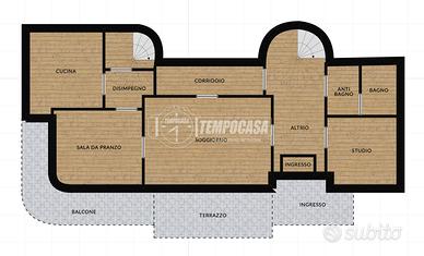 Immagina di varcare la porta di ingresso e di essere accolto da un ampio atrio che ti conduce, in modo elegante, al soggiorno e alla sala da pranzo. Ogni dettaglio, dai materiali pregiati ai giochi di luce, è pensato per offrirti un'esperienza di comfort senza pari. Accanto, l'ampia cucina, il cuore pulsante della casa, ti invita a creare piatti prelibati, mentre un comodo disimpegno ti accompagna al bagno di servizio e a una raffinata camera adibita a ufficio, ideale per lavorare in totale privacy.