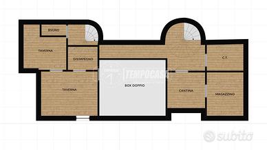 Scendendo al piano seminterrato, ti accoglie una grande taverna: uno spazio perfetto per trascorrere momenti conviviali con la famiglia o gli amici, dotato di cucina, soggiorno e sala da pranzo. Una stanza adibita a magazzino ti offre un ulteriore angolo per riporre ogni cosa in modo ordinato. E non dimentichiamo l'importante box doppio, che ti permette di parcheggiare comodamente due auto e tanto altro.