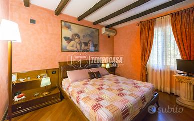La villa circondata da un DOPPIO GIARDINO e PORTICO (dal quale si accede al locale caldaia) offre numerose possibilità di utilizzo per il tempo libero, sport, benessere e organizzazione di cene conviviali.