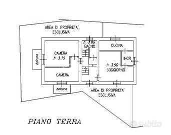 Al piano terra troviamo l'ingresso che conduce al luminoso soggiorno, alla cucina abitabile, a due camere da letto, di cui una con accesso al balcone, e a un bagno finestrato.