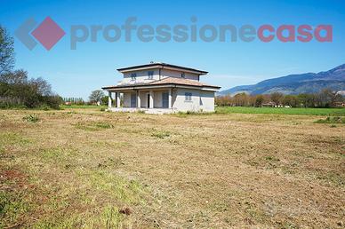 Aquino, Contrada Castelluccio - A pochi chilometri da Cassino, in zona residenziale immersa nel verde, ma vicina ai principali servizi di utilità, proponiamo in vendita esclusiva una bellissima villa unifamiliare e indipendente di 270 mq, su 2 livelli, oltre garage doppio, con giardino intorno di circa 2.000 mq, ad un prezzo affare unico e irripetibile. Peraltro, trattasi di tipologia di immobile di cui non esiste uguale attualmente posto in vendita in tutto il Cassinate. L'immobile è stato appena realizzato, in classe energetica A4 che è la massima classe prevista dalla normativa. La dotazione di un impianto fotovoltaico da 6 kw. con accumulatori da 10 consentono di abbattere quasi totalmente il costo dell'energia elettrica, considerando anche il ricavato dalla vendita dell'eccedenza prodotta. La presenza di un pozzo artesiano di grande profondità permette l'utilizzo gratuito dell'acqua per irrigazione e servizi, ma un potabilizzatore di modesto importo può renderla idonea al consumo umano se si desidera. La splendida villa si compone di: piano terra con ingresso e ampio living con canna fumaria e comignolo per eventuale installazione di un camino a legna, angolo cottura, una comoda dispensa accessibile direttamente dalla zona cottura, studio, bagno e garage. A completamento un ampio porticato. La zona notte al primo piano è composta da 3 camere da letto, di cui una suite con bagno interno e cabina armadio. Le altre 2 camere sono di ampie dimensioni ed è possibile in entrambe posizionare un letto matrimoniale o due letti singoli, un bagno in comune, balcone con affaccio sul giardino. Il riscaldamento invernale, suddiviso in varie zone, è garantito da un generatore a condensazione alimentato a gas. Per la climatizzazione estiva ogni ambiente ha la predisposizione per l'installazione di un climatizzatore. Urbanisticamente l'immobile è fornito di tutta la documentazione, come progetto, accatastamento, agibilità, Certificazione Energetica, ecc.