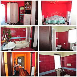 - Primo piano rialzato: salone dotato di camino di compagnia, luminoso tre finestre e balcone terrazzino; camera da letto matrimoniale con bagno in camera, con vasca idromassaggio; camera grande come una matrimoniale; cameretta; bagno completo di doccia.