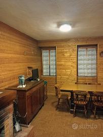 Zona giorno: soggiorno doppio con camino, cucinotto, bagno di servizio.