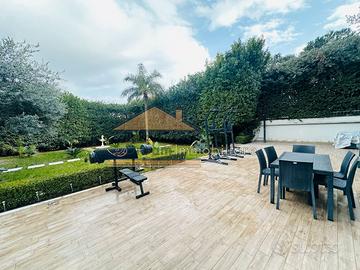 Proponiamo in vendita in Via Signorelli, in prossimità della metropolitana, villa indipendente su quattro livelli con ampio giardino, in parco residenziale e tranquillo, essa si presenta in ottime condizioni finemente ristrutturata con materiali di pregio, e con una disposizione interna razionale e ben distribuita, offrendo ampi spazi e comfort; ed inoltre gode di una splendida vista aperta che garantisce luminosità e un' atmosfera accogliente. La soluzione è composta al piano seminterrato di 80 mq da: tavernetta con 1 accessorio; al piano rialzato al primo livello di 80 mq dispone di: ingresso in ampio salone e cucina living con ampia vetrata che da affaccio sul giardino, 1 accessorio e ripostiglio; mentre il secondo livello di 80 mq si compone da: 1 camera da letto con 1 bagno in camera, 2 camerette, 1 bagno principale e doppia esposizione con ampie balconate; ed infine il terzo livello di 80 mq presenta: mansarda unico ampio ambiente e 1 accessorio. Completa la soluzione ampio giardino esterno di circa 1.000 mq in parte pavimentato e in parte con area verde, ideale per momenti di relax e convivialità. Inoltre la soluzione dispone di: impianto di riscaldamento autonomo a pavimento, aria condizionata, cappotto termico, classe energetica A.
