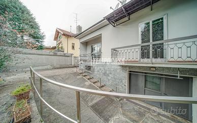 La soluzione gode inoltre di una taverna di 100mq e di un giardino di 250 mq che percorre tutti e quattro i lati della casa.