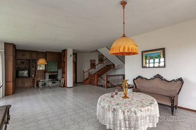 Rif: V06/25 (193328745) - In Strada del Vesio (nelle vicinanze del centro paese, a pochi metri dalla provinciale e comoda a tutti i servizi essenziali) proponiamo in vendita villa indipendente panoramicissima libera su 4 lati. Una proprietà esclusiva di 520 mq totali abbracciata da un magnifico giardino/parco di 3.600 mq. Ideale per famiglie numerose, per creare eventualmente due unità abitative o per chi cerca ampi spazi. Al piano rialzato di 190 mq: appartamento luminoso (volendo divisibile) composto da: ampio salone angolare con suggestivo bowindow e accogliente caminetto, cucina abitabile, due camere da letto, oltre un vano cabina armadi trasformabile in terza cameretta con balcone. Doppi servizi (uno con balcone) e ripostiglio. Il salone si affaccia su un terrazzo panoramico di mq 85 dotato di camino esterno, perfetto per cene e momenti di relax all'aperto. Al piano mansardato di mq 140 complessivi (potenziale da sviluppare): un locale di mq 61 (con predisposizione per un bagno) oltre vano solaio di mq 80. Spazi ideali per sala hobby o altro. Al piano terra/seminterrato di mq 270: due vani finestrati, servizio, due ampi locali ad uso garage/magazzino per ricovero auto, attrezzi, deposito/laboratorio, oltre cantina e locale caldaia. Ampio cortile, giardino recintato piantumato circostante alla villa, oltre terreno con piante da frutta per complessivi mq 3600. Riscaldamento autonomo a metano. Prezzo di vendita Euro 450.000, 00. L'immobile è disponibile da subito. I dati e le indicazioni esposti nell'annuncio e le foto inserite hanno carattere puramente informativo e non costituiscono elementi contrattuali.