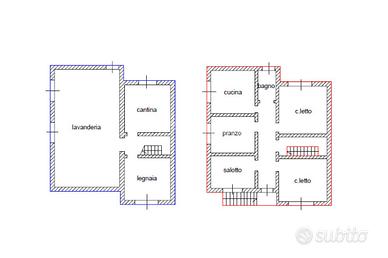 Piano terra - zona servizi (h 2,20m) : Suddiviso in tre ambienti, con possibilità di realizzare un'ampia taverna
