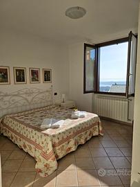 Dal soggiorno si accede al terrazzo panoramico, mentre il giardino privato è recintato È dotato di lettini prendisole.