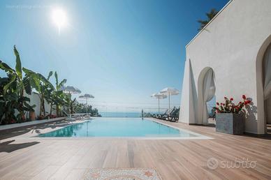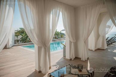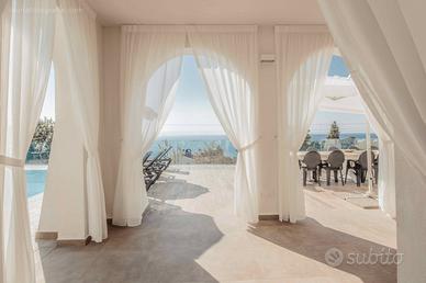 Rif: CBI118-1960-301773 Classe energetica: A1 - EPglnr: 67.35 kWh/m² Questa lussuosa villa in vendita si trova nella splendida località di Coccorino, una delle zone più esclusive e ricercate della costa tirrenica calabrese situata tra le pittoresche località turistiche di Capo Vaticano e Tropea. Frutto di una recente ristrutturazione, la villa si presenta in ottime condizioni e si estende su una superficie totale di 500 metri quadrati. L'immobile si trova in una posizione privilegiata, e garantisce privacy e tranquillità ai suoi abitanti. La proprietà si trova a soli 300 metri dalla spiaggia, affacciata sul mare, vanta una posizione strategica e ideale, inserita in un contesto di lusso e comfort. La proprietà da cui si ha accesso attraverso una scalinata si sviluppa su tre livelli: Al piano seminterrato troviamo un ampia taverna, bagno, locale impianti e garage in cui è possibile parcheggiare comodamente tre auto. Al piano terra si accede ad un grandissimo living con meravigliosa cucina a vista, soggiorno e locale dispensa. Un locale lavanderia, tre camere da letto tutte con accesso esterno, un locale guardaroba e tre bagni. Al piano superiore completamente indipendente è presente un ulteriore ampia zona living con uscita sul terrazzo panoramico, due camere da letto di cui una con vista mare e accesso esterno ed un bagno. All'esterno, la villa vanta una splendida piscina di 50 mq di acqua salata con solarium con vista mozzafiato sul mare, perfetta per rilassarsi e godere delle calde giornate estive. Inoltre, la proprietà dispone di un'ampia terrazza panoramica, ideale per godere di spettacolari tramonti sul mare e organizzare cene all'aperto. La villa è dotata di tutti i comfort moderni, impianto fotovoltaico da 10,935 kwp (27 pannelli con 20 kw di accumulo), aria condizionata, sistema di allarme, wi fi in tutte le zone della villa. Questa villa rappresenta una rara opportunità di acquistare un immobile di lusso in una delle località più...