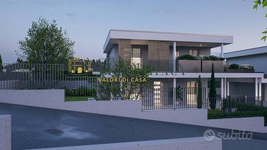 Rif: P 26.87 Classe energetica: A4 A Lazise, nella rinomata frazione di Colà, proponiamo in vendita una splendida villa singola di prestigio, progettata in classe energetica A4 e dotata di una magnifica piscina privata. La proprietà si sviluppa su due livelli fuori terra, accuratamente suddivisi per ottimizzare ogni spazio abitativo e garantire il massimo comfort. Al piano terra troviamo un luminoso ingresso, un ampio soggiorno con cucina a vista, ideale per momenti conviviali, e un bagno di servizio. Al primo piano si accede alla zona notte, composta da una elegante camera matrimoniale con bagno privato e guardaroba esclusivo, due ulteriori camere spaziose, un bagno finestrato e un meraviglioso terrazzo, perfetto per rilassarsi e godere della vista. All'esterno, la villa è circondata da un ampio giardino privato, sapientemente progettato, che ospita una piscina esclusiva di 32 metri quadrati, ideale per trascorrere piacevoli giornate estive in totale privacy e relax. Completano la proprietà un comodo doppio posto auto situato al piano terra, garantendo praticità e sicurezza. Questa villa è dotata di tecnologie di ultima generazione per un'alta efficienza energetica e un comfort abitativo superiore: pannelli fotovoltaici per la produzione di energia sostenibile, una moderna pompa di calore e un sistema di riscaldamento a pavimento per il massimo benessere. Situata in una nuova e tranquilla zona residenziale, immersa tra edifici di recente costruzione, questa villa si trova a pochi passi dal lago, offrendo una posizione privilegiata e un contesto di assoluta qualità. La consegna è prevista per Maggio 2026. Non esitate a contattarci per ulteriori informazioni per questa nuova villa singola su due livelli a A Lazise, frazione Colà. Possibilità di mutuo a condizioni agevolate. La nostra consulenza ti consente di individuare il prodotto più adatto alle condizioni economiche più vantaggiose. Contattateci o scriveteci per una consulenza gratuita.