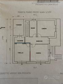 Al piano superiore alloggio composto da bagno ristrutturato, due ampie camere, tinello, cucinino e spazioso terrazzo verandato per un totale di circa 90 mq calpestabili.