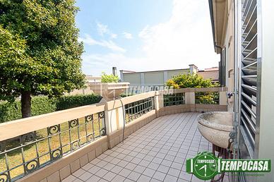 La soluzione viene completata da giardino e un ampio box doppio di 45 mq.