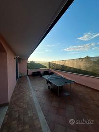 La veranda esterna presenta un piccolo salottino con tavolo da ping pong