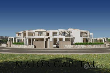 Le ville si sviluppano su due livelli, piano terra e primo piano, e offrono ambienti spaziosi e luminosi, ideali per una famiglia. Ogni unità è arricchita da verande coperte e scoperte, perfette per godersi il panorama e il clima mite in ogni stagione. Al piano terra, un ampio living si integra armoniosamente con la cucina, creando uno spazio conviviale e funzionale, completato da un comodo bagno di servizio. Al primo piano, le residenze sono configurabili con tre camere da letto e due bagni, oppure con quattro camere da letto e un bagno. Ogni unità offre ampie possibilità di personalizzazione delle finiture, e dettagli curati con attenzione, utilizzando materiali di alta qualità che riflettono la tradizione sarda, ma con un tocco di innovazione, per offrire una residenza all'avanguardia.