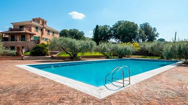 Rif: CBI118-1923-302104 Classe energetica: G - EPglnr: 175.00 kWh/m² Nel cuore prestigioso dei Castelli Romani a pochi minuti da Roma immersa nella quiete e nel verde, proponiamo in vendita una straordinaria proprietà composta da villa principale e appartamento indipendente, per una superficie complessiva di circa 670 mq. Questa proprietà esclusiva è circondata da un curatissimo parco privato di circa 9.000 mq, arricchito da alberi di ulivi, essenze mediterranee, zone relax pensate per la massima privacy, una grande piscina (20x10). La villa si sviluppa su più livelli collegati da meravigliose scale in marmo rosa e da ascensore interno, ed è caratterizzata da finiture di pregio, pavimenti in marmo/parquet pregiato e ampie vetrate che inondano gli ambienti di splendida luce naturale. Al suo interno troviamo un ampio ingresso, salone doppio di rappresentanza con camino, una sala da pranzo formale, una spaziosa doppia cucina con camino, quattro camere, di cui una padronale con soppalco quattro bagni, armadi a muro nei corridoi, oltre a zona hobby. L'appartamento è composto da ulteriori 3 camere, cucina e bagno, ideale come unità separata per ospiti, garantendo massima privacy e funzionalità. La proprietà vanta ampi terrazzi panoramici con vista, perfetti per ricevimenti all'aperto. Completano la proprietà due locali garage con capienza per 4/5 autovetture ed un locale magazzino. In posizione strategica, lungo Via dei Laghi, la proprietà dista soli 3 km dallAeroporto di Ciampino. Una residenza unica per chi cerca prestigio, riservatezza e vicinanza a Roma, con un forte potenziale sia ricettivo che abitativo.