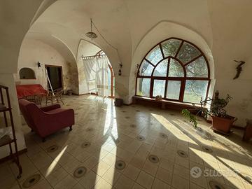 Rif: 646 Classe energetica: G Splendida villa ubicata nella zona di Cernera, più precisamente nel Parco nazionale delle Gravine e a poca distanza dal centro abitato. La proprietà è immersa nella natura, circondata dalla macchia mediterranea e garantisce una tranquillità assoluta. La villa si estende su una superficie totale di 550 metri quadrati e si sviluppa su due livelli. Il piano terra è caratterizzato da un ampio soggiorno con due meravigliose vetrate vista giardino, una cucina in muratura e una sala da pranzo con camino, due vani matrimoniali e bagno; al primo piano si accede da scala interna con accesso a un ulteriore zona giorno con camino, dotato di ampie finestre che offrono una vista mozzafiato sul paesaggio circostante, angolo cottura, bagno e due ampie vani matrimoniali con pavimenti d'epoca originali. Inoltre il piano terra è caratterizzato da magazzini e depositi. Terreni circostanti di 20 ettari di varia destinazione come ad esempio mandorleto, pascolo, seminativo, uliveto. Acquedotto pugliese, pozzo artesiano, impianto d'allarme.