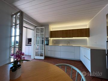 Rif: RC3581 MEDEA Prestigiosa villa panoramica immersa nella natura In posizione dominante e di assoluta riservatezza, sul colle dellArapacis e a ridosso di unarea naturale protetta, proponiamo in vendita una prestigiosa villa di recente realizzazione, caratterizzata da eleganza architettonica e straordinaria luminosità. La proprietà si sviluppa su due livelli principali, oltre a un affascinante livello sfalsato che accoglie unampia zona living di circa 80 mq, impreziosita da grandi aperture verso lesterno e con accesso diretto al porticato panoramico. Da qui si gode di una vista mozzafiato sulla pianura friulana, che si estende fino alla laguna di Grado. La zona giorno è completata da una cucina di alto livello, completamente attrezzata e collegata allarea esterna con barbecue, oltre a unelegante sala da pranzo e a funzionali ambienti di servizio, tra cui dispensa, cantine e locali accessori. La zona notte, al piano superiore, offre due spaziose camere per gli ospiti servite da un bagno con sauna, oltre a una raffinata suite padronale dotata di bagno privato e cabina armadio. Allesterno, il parco privato di circa 1.400 mq, sapientemente piantumato con essenze tipiche del Carso, è attraversato da un suggestivo corso dacqua artificiale che contribuisce a creare unatmosfera di assoluto relax e armonia con il paesaggio. Completa la proprietà un ampio garage di circa 70 mq, in grado di ospitare comodamente fino a quattro autovetture.